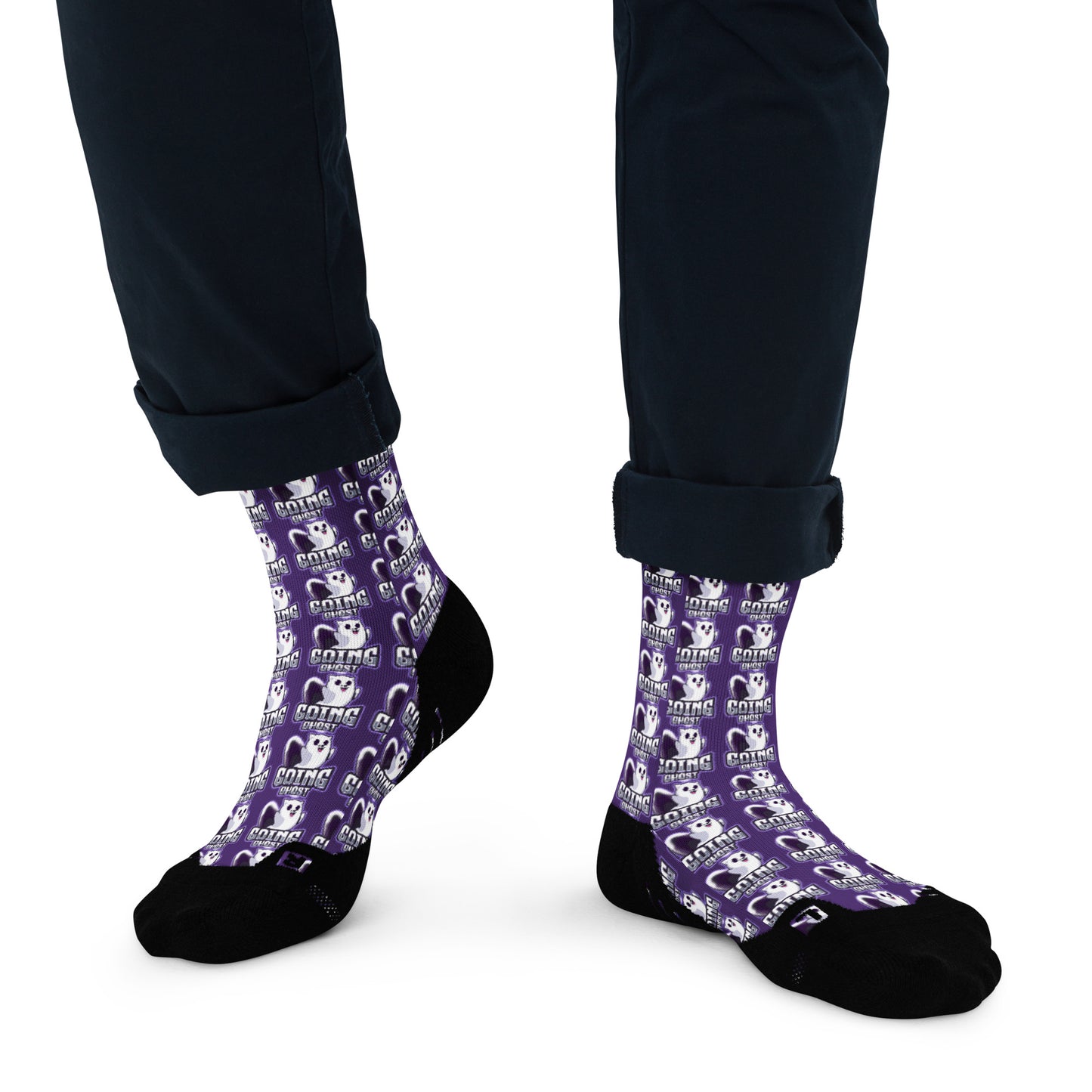 These custom-made crew socks are a great choice for both casual and sporty looks. Spice up your outfit with these nifty crew-length socks!